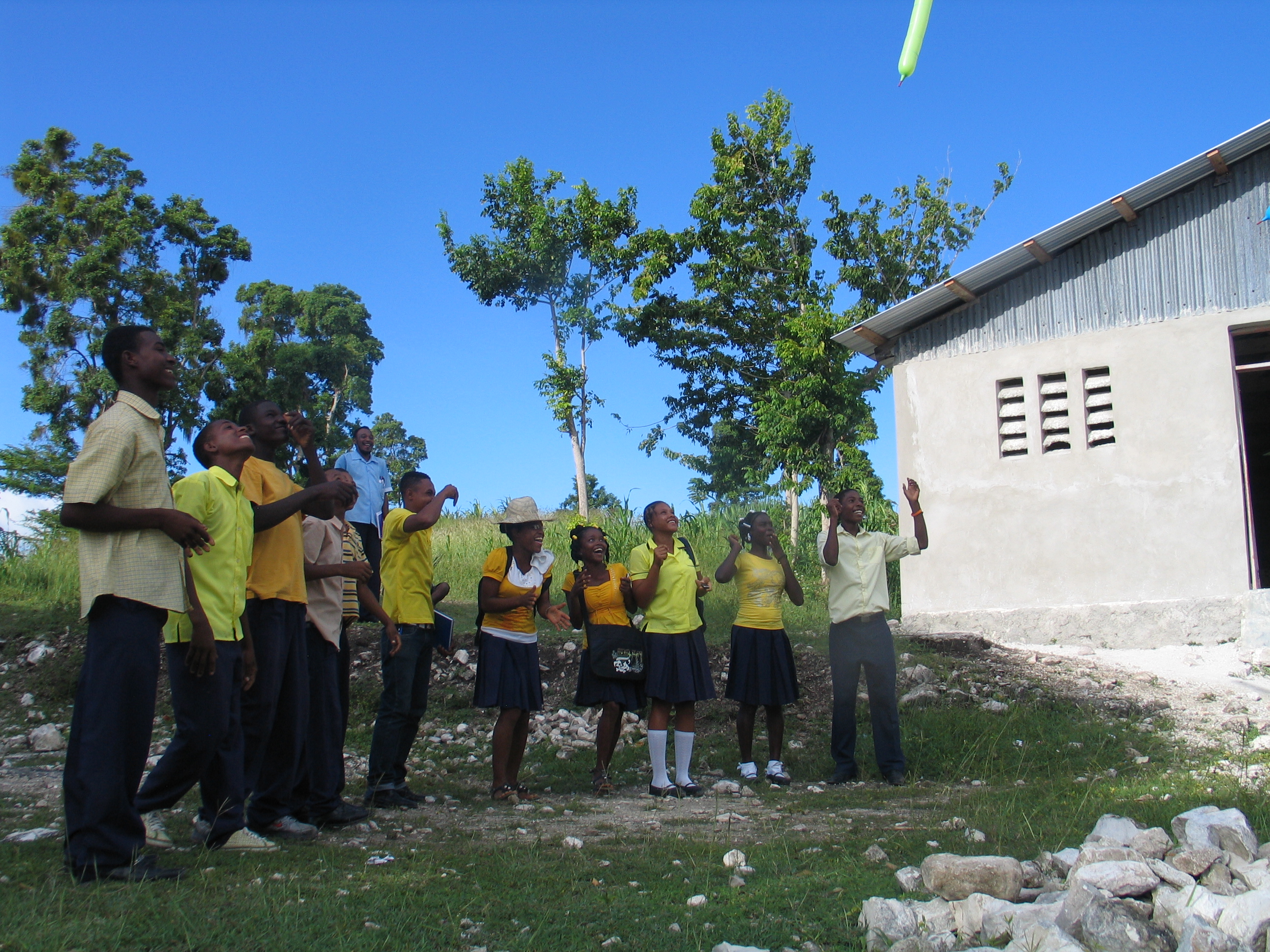 The directors of this school made us a meal from what little they had. It was very humbling considering that they might not have much to eat themselves. The meal consisted of 2 grilled fish with the heads and tails still on in a red spicy sauce, a large white yam, fresh avocado, and delicious fruit juice. The juice was the best part! We tried to eat the fish but couldn’t get used to all the many tiny bones. At home we had been reminded to leave some of what we were offered for the Haitians to finish, and this was the perfect opportunity! Little did I know what would happen next. Into the room walks our sponsored child with her two friends and it was suggested that I offer the rest of my plate to her. I was a little nervous about that. I went up to her and offered it to her. She willingly took it. Mike and Tim Butikofer then offered their plates to her two friends. Those girls all sat down to eat and were so thankful for our leftovers! I served them all fruit drinks while they were eating. They cleaned everything off of those plates! It was very humbling.
