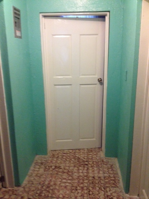 I’m sure there is a perfectly plausible explanation why this door is hanging upside down! It’s not in our house actually, it’s in the guest house at Bonne Fin. Well, it would drive me perfectly crazy to use that bathroom door every day if it was in my house!
