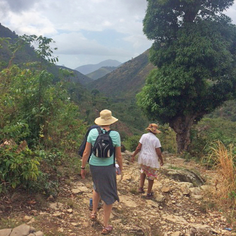 The scenery was beautiful! It started with a climb along a river with many large rocks. We saw houses along the path and Haitians busy with getting water for the day, making food, etc. Others we passed had no problem carrying things on their head to sell at a nearby market. Some were on their way to tend their garden or some kind of work, but some were just sitting and enjoying the conversation of the day.