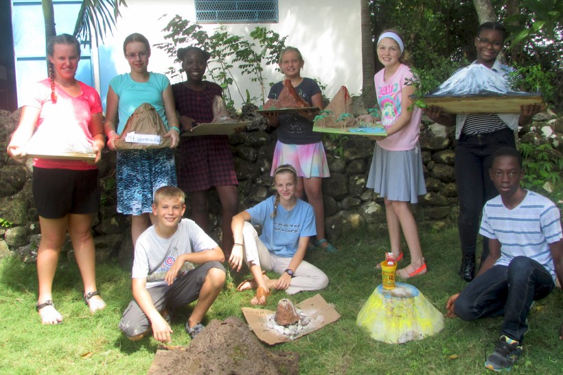 The 6th and 7th grade classes displaying their volcano creations!