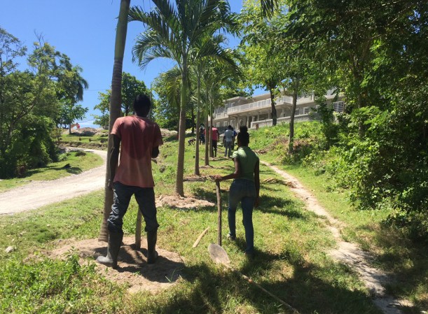 A student group from SEED planting a new row of palms!