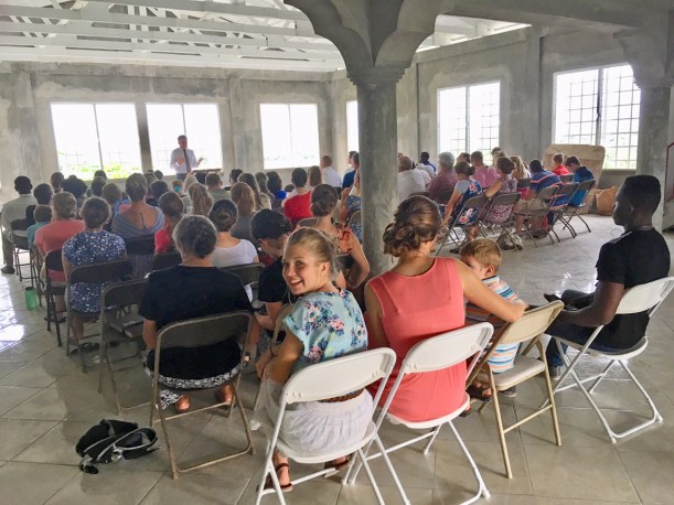 We hope and pray the building will be a huge blessing over time to the Haitians and other missionaries as well. Although at the time we didn’t have working restrooms or fans, we were still happy to be able to host our first Cayes English church service in the new Child Care meeting room this month. God is good!