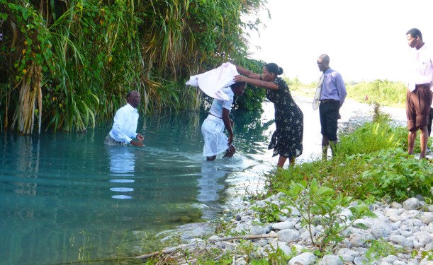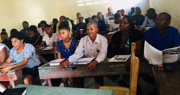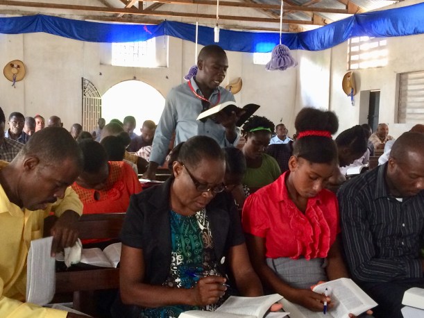 Role-playing a courtroom scene to give the Haitians a better understanding of the fine that Christ paid for them! Explaining Christ is their substitute.